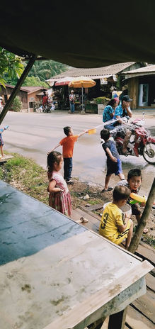 Kids love New Year’s One of the pleasures of the Lao New Year, especially if you’re young at heart, is to splash people with water. For strictly ceremonial purposes, of course.